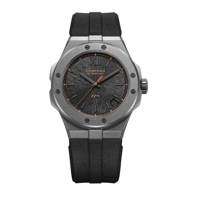 2025 Model Chopard Alpine Eagle SL Cadence 8HF 41mm Watch - Ref: 298600-3028 - Black Index Dial in Titanium Case, Black Rubber