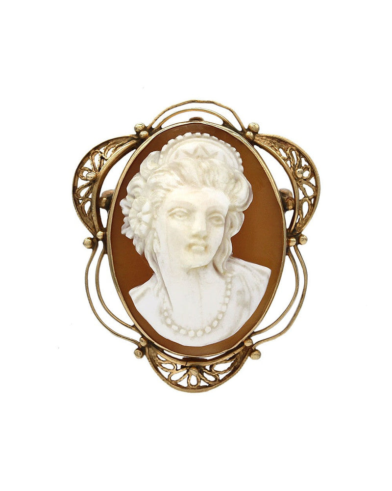 Womans Portrait Oval Cameo Brooch Pendant in Gold