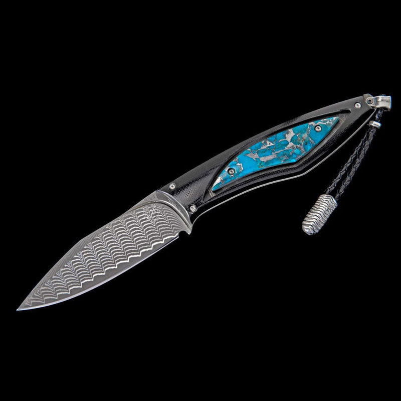 William Henry Tucson Fixed-Blade Carbon Fiber Knife Turquoise Damascus F28 TUCSON