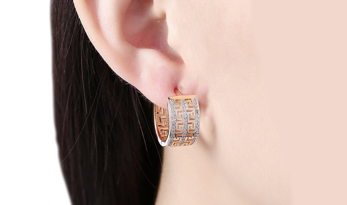 18K Gold Plated Micro-Lining Greek Design Earrings