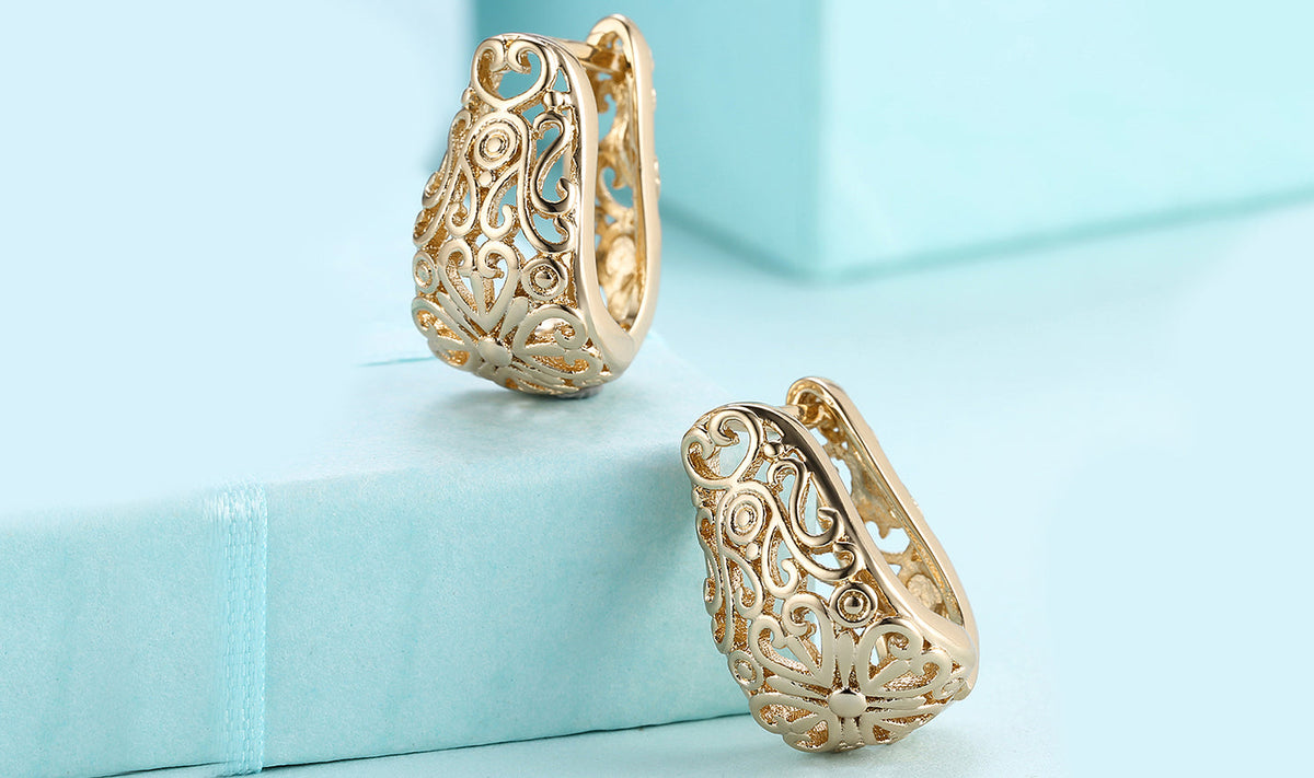 18K Gold Plating Filigree Laser Cut Clip On Earrings