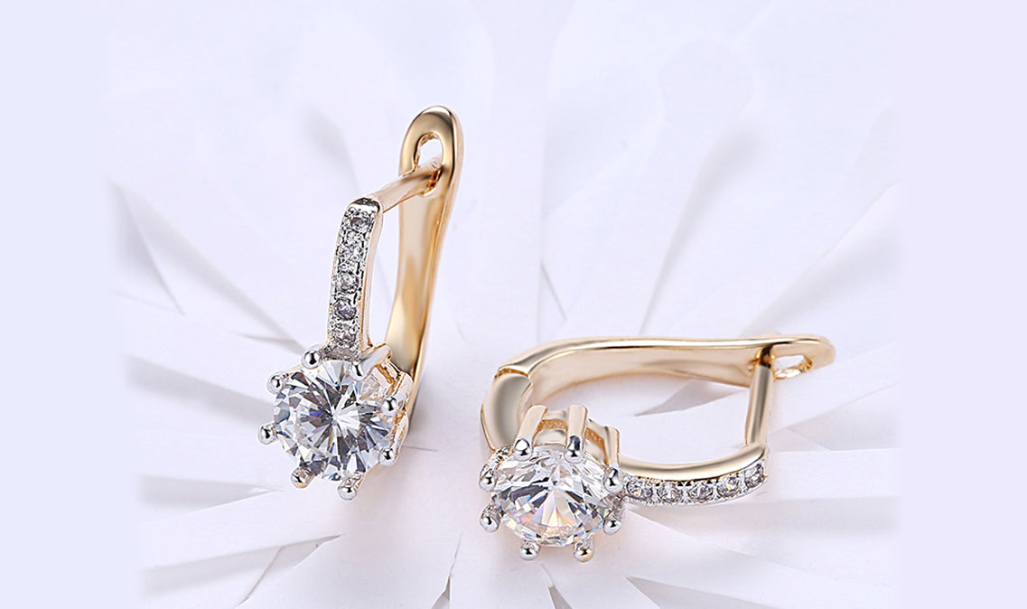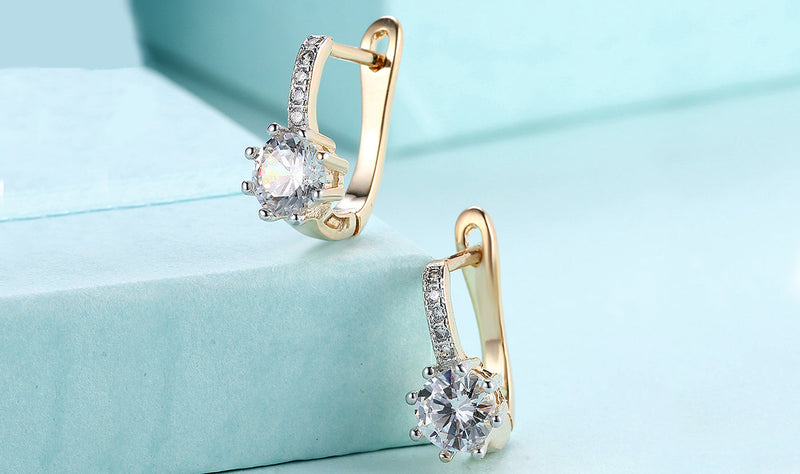 18K Gold Plating Elements Starburst Leverback Pave Clip On Earrings