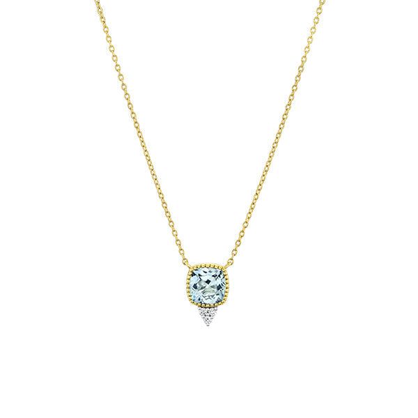 18k Yellow Gold Cushion Cut Blue Topaz Pendant Necklace