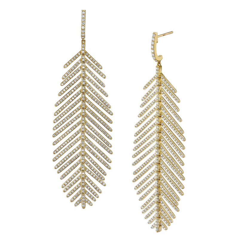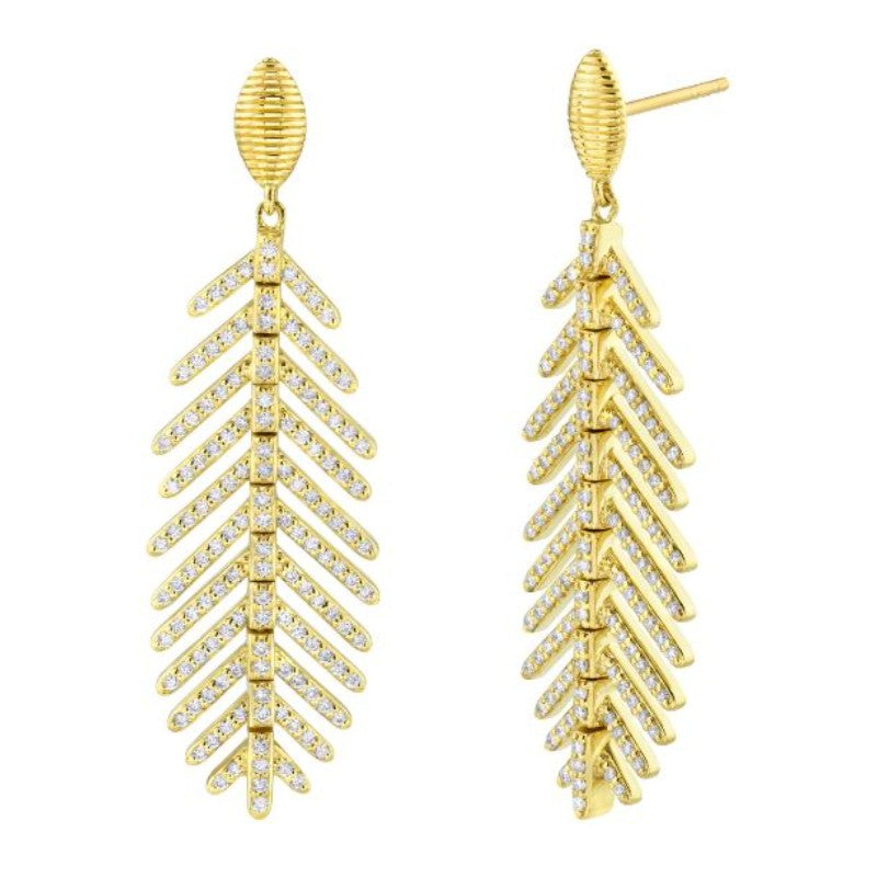 18K Yellow Gold Diamond Small Feather Drop Earrings
