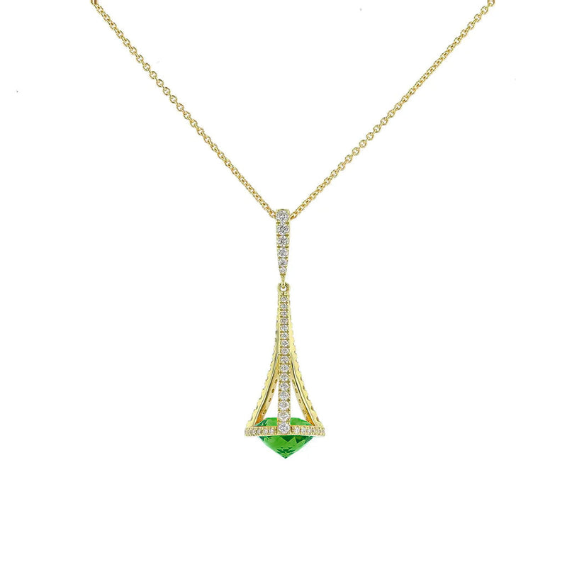 Peridot and Diamond Drop Necklace in White and Yellow Gold