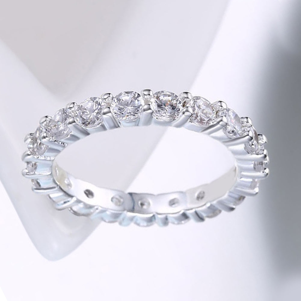 Classic Swarovski Crystal Wedding Band Ring Set in 18K White Gold Plated