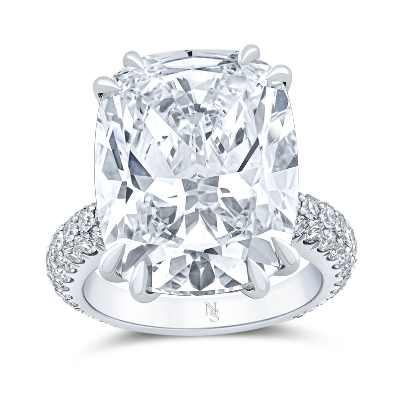 15.09 Cushion Diamond Ring with Pave Band