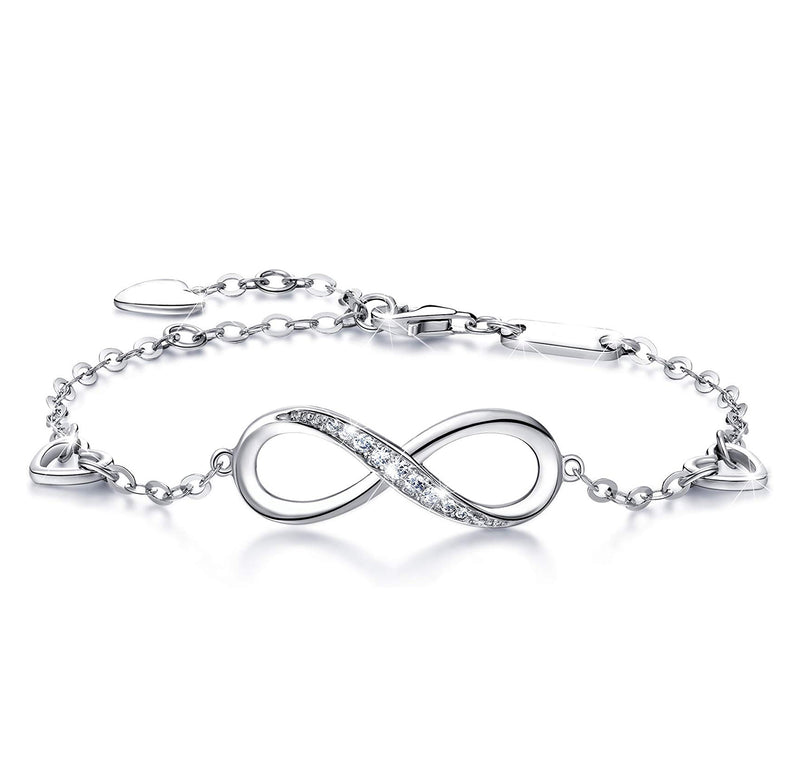 White Swarovski Elements Infinite Pendant Chain Bracelet in 18K White Gold Plating