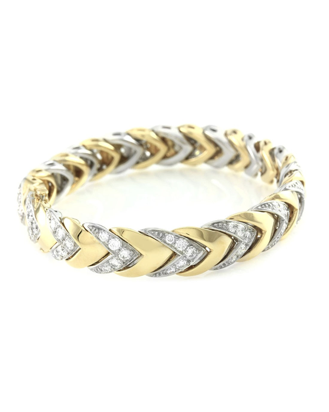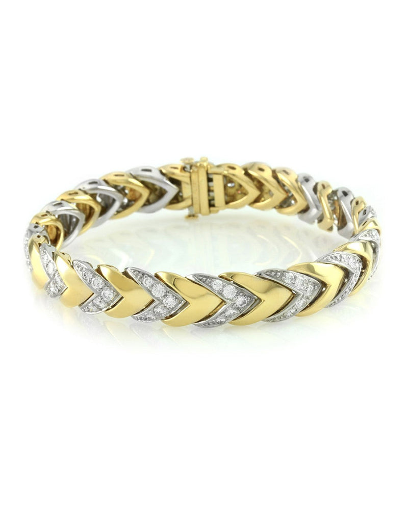 Pave Diamond Bracelet with Chevoron Design in 18K Yellow Gold and Platinum