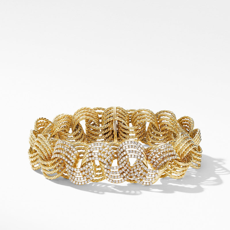 DY Origami Micro Cable Bracelet in 18K Yellow Gold with Diamonds