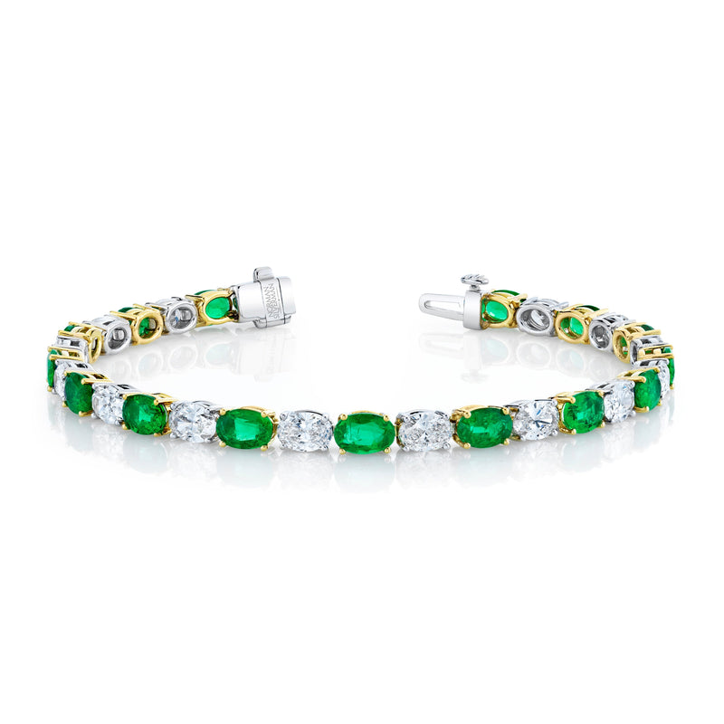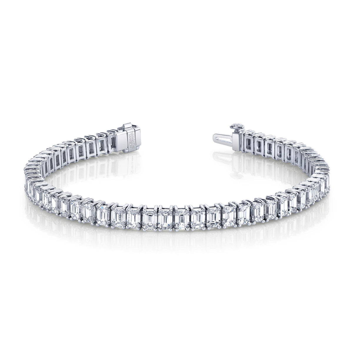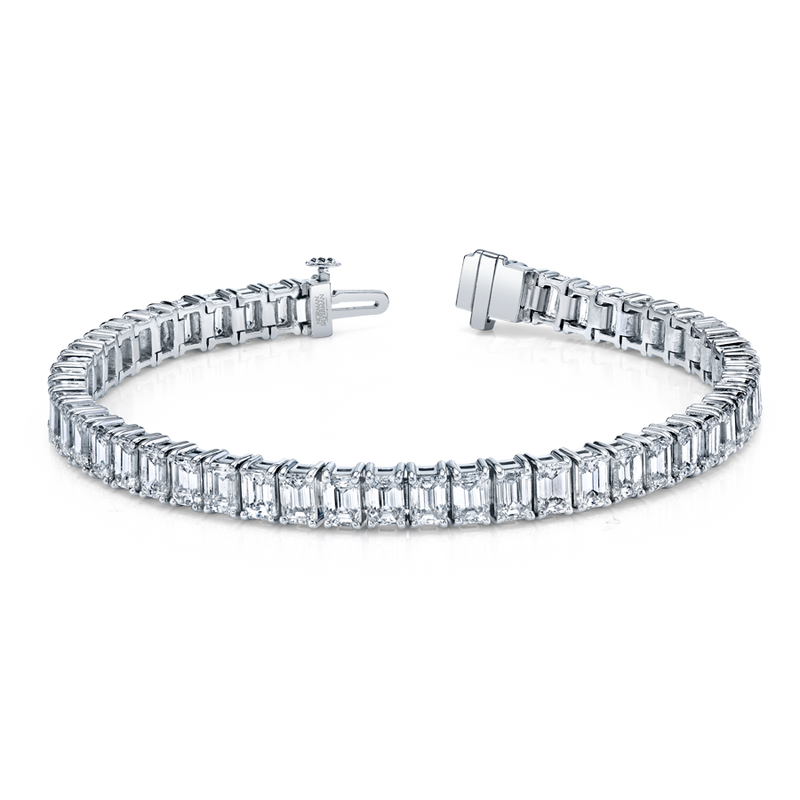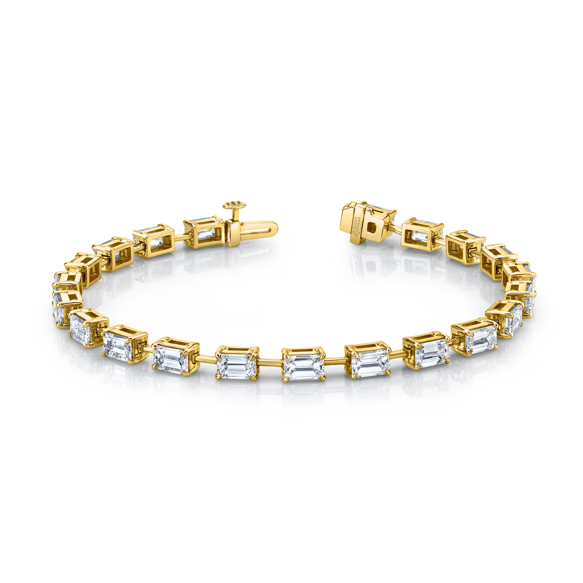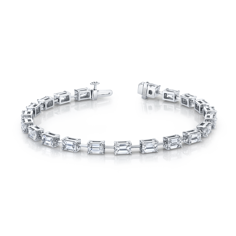 Straight Line Wire Set Bracelet with East West Emerald Cut Diamonds