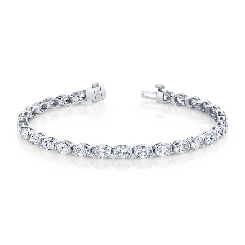 Straight Line Wire Set Bracelet with Oval Diamonds