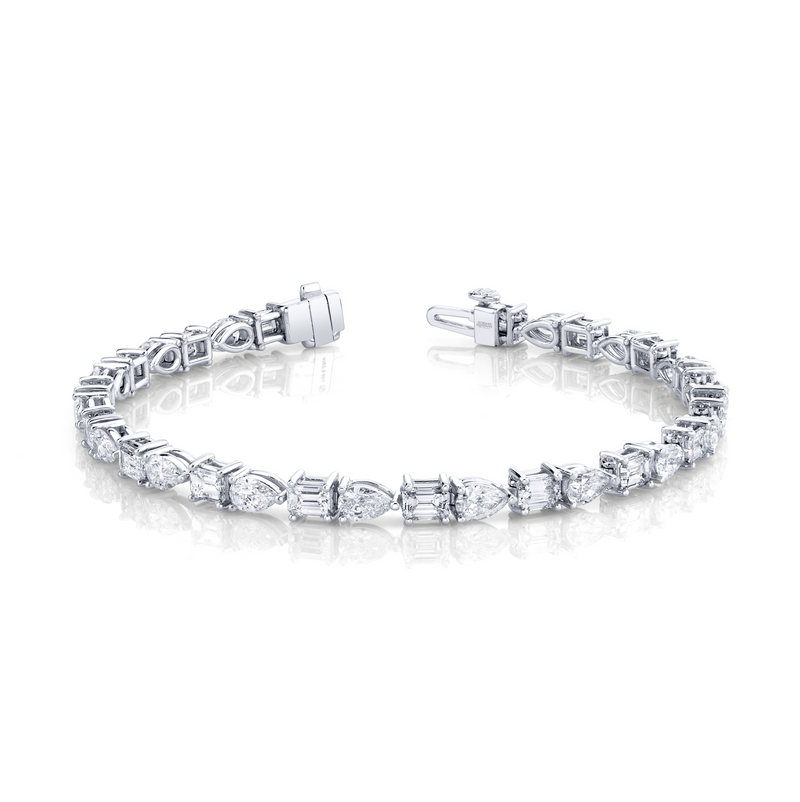 Straight Line Wire Set Bracelet with Fancy Mixed Shape Diamonds