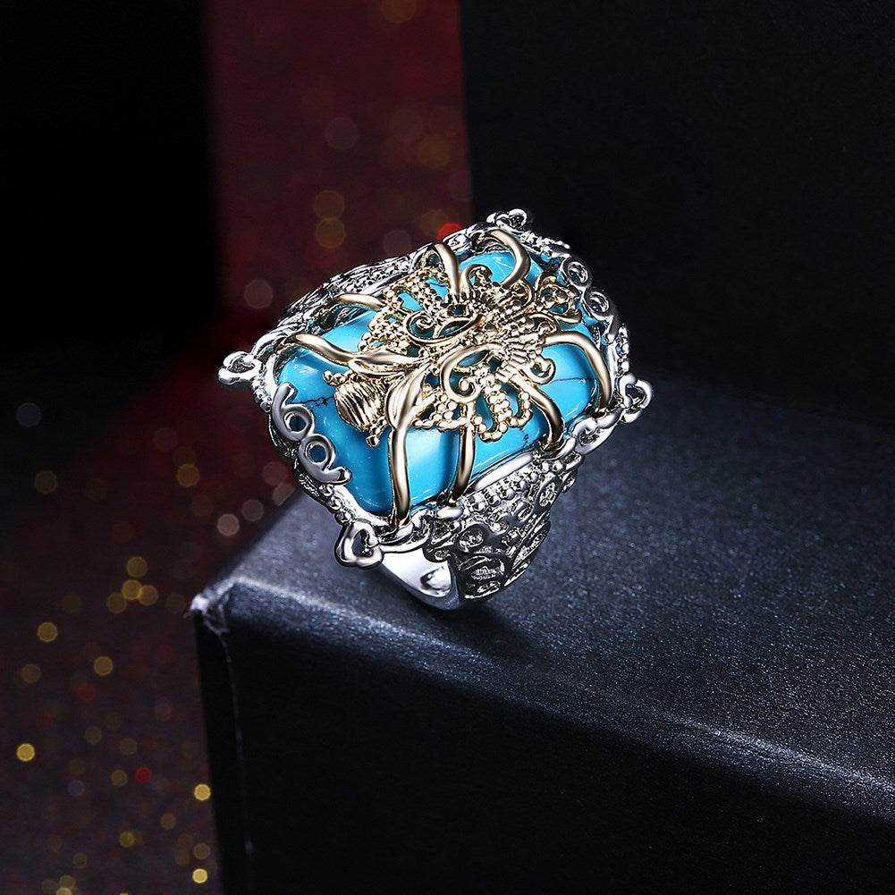 Turquoise Gold Filigree Statement Ring in 18K White Gold