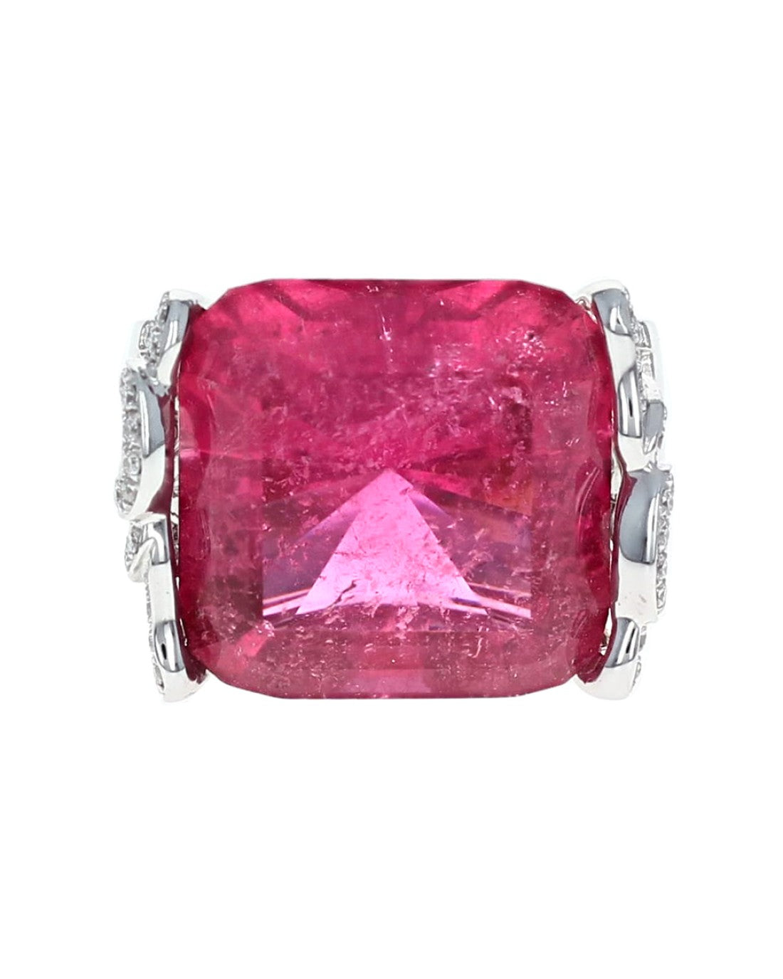 Pink Rubellite Tourmaline & Diamond Cocktail Ring in 18K White Gold
