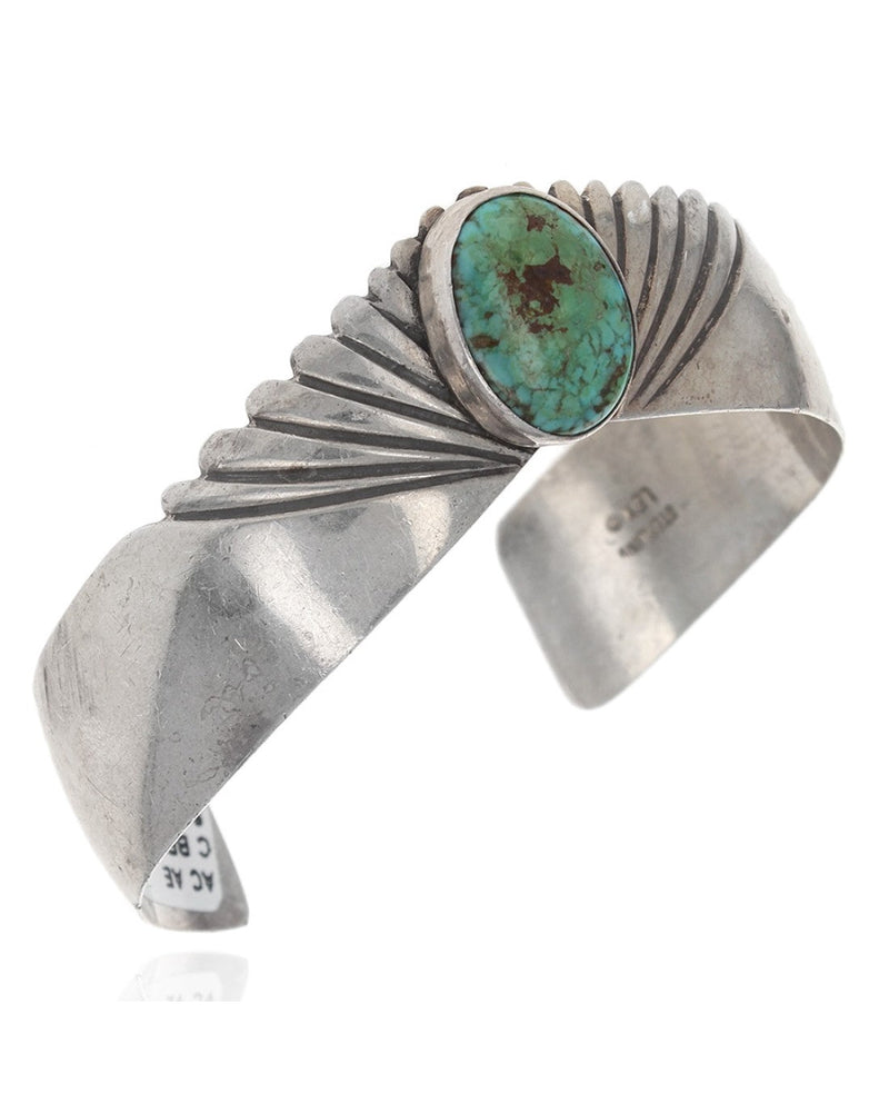 Navajo Archie Martinez Sterling Silver & Turquoise Cuff Bracelet