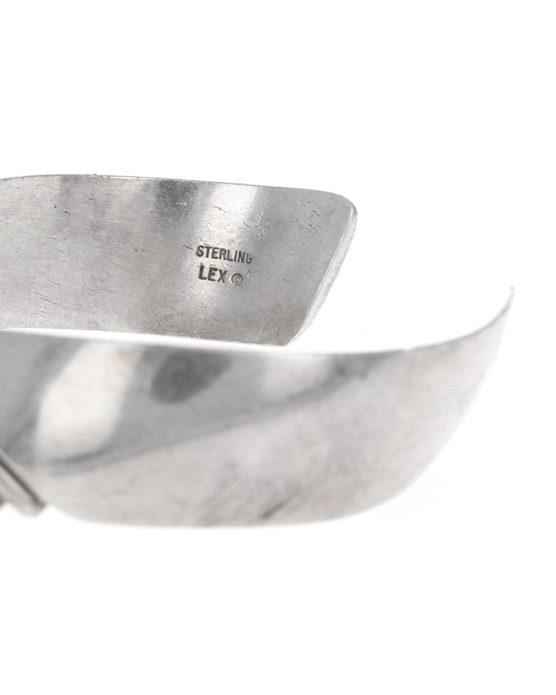 Navajo Signed LEX Sterling Silver & Turquoise Cuff Bracelet