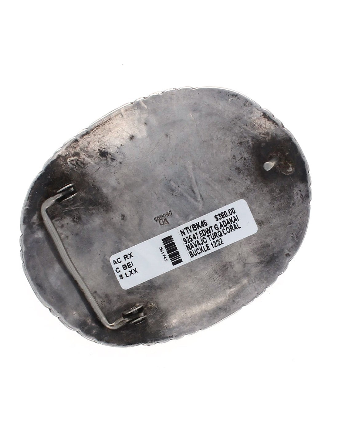Navajo Gilbert Adakai Sterling Silver Turquoise & Coral Buckle