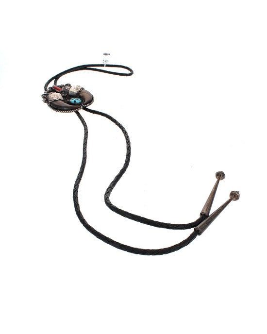 Navajo Fannie Platero Sterling Silver Turquoise Coral & Claws Bolo Tie