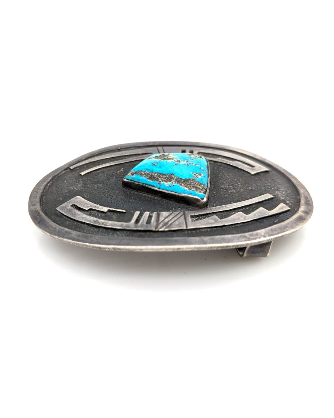 Navajo Gilbert Adakai Sterling Silver Turquoise & Coral Buckle