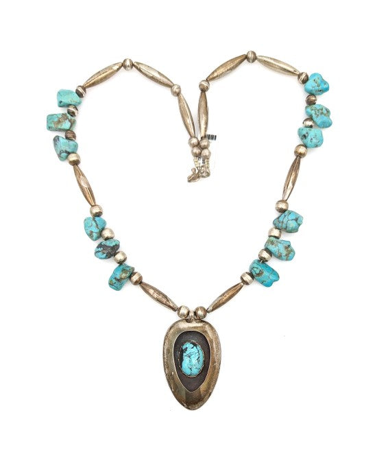 Navajo Sterling Silver Bead & Turquoise Necklace