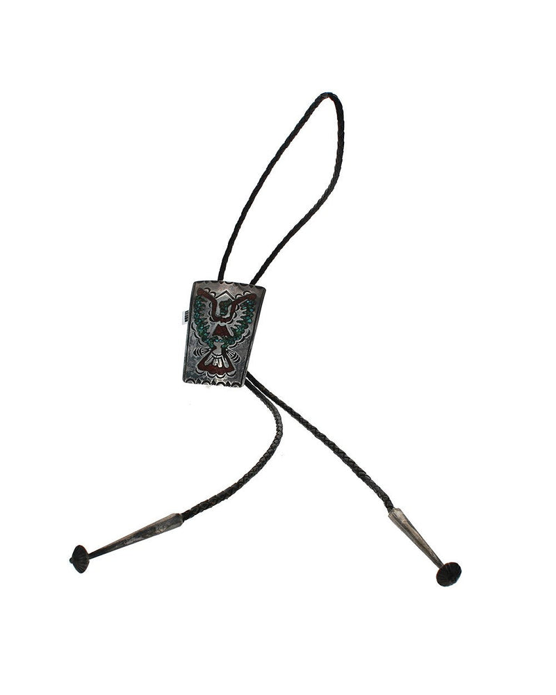 Navajo Sterling Silver Turquoise & Coral Chip Inlay Peyote Bird Bolo Tie