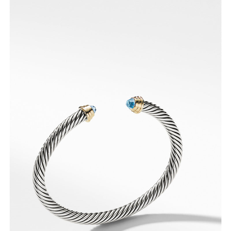 Cable Kids Birthstone Bracelet with Blue Topaz and 14K Gold, 4mm