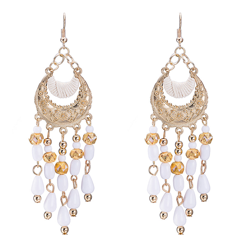 Fringe White Drop Earring in 18K Gold Plated