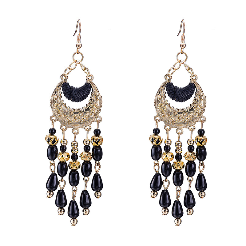 Fringe Black Drop Earring in 18K Gold Plated