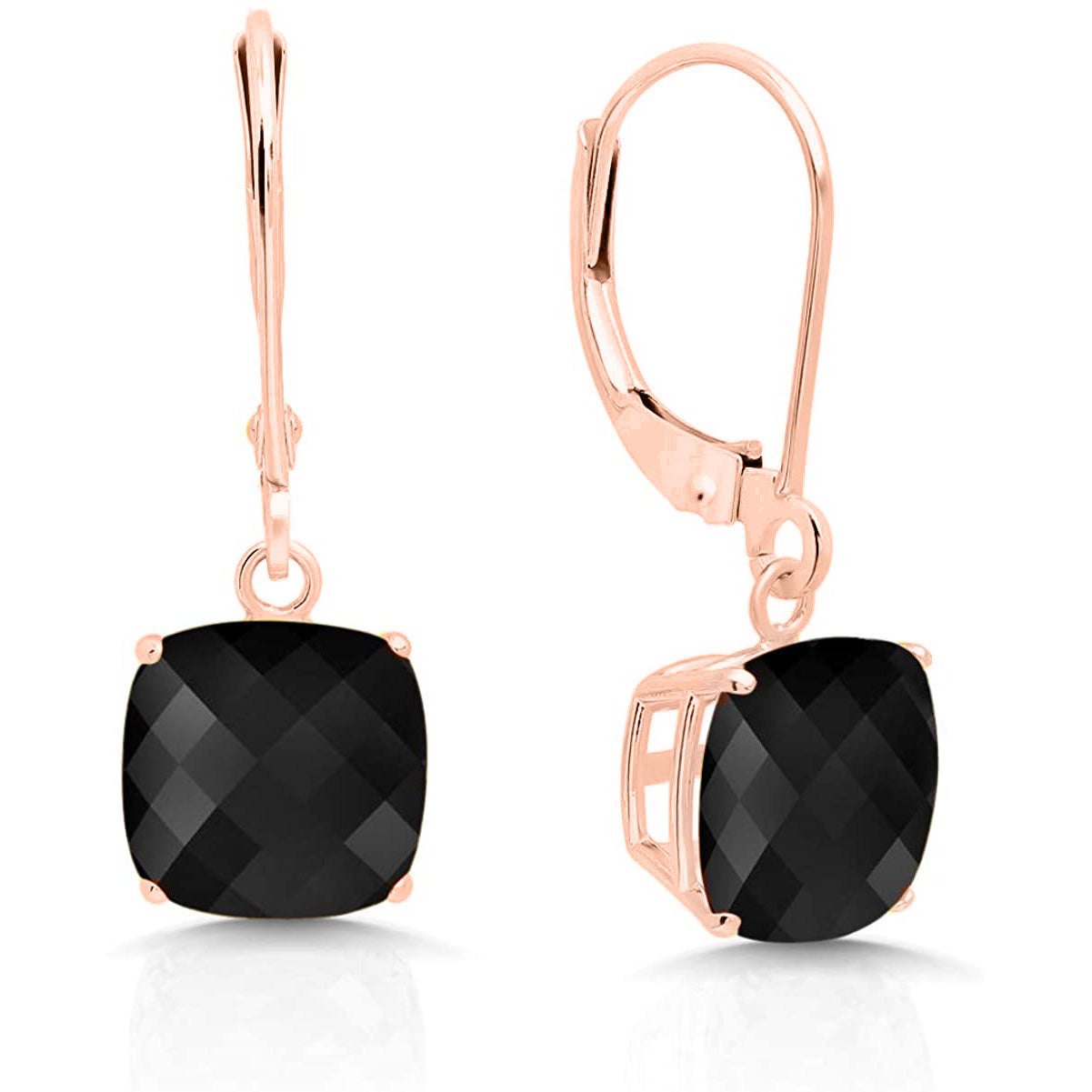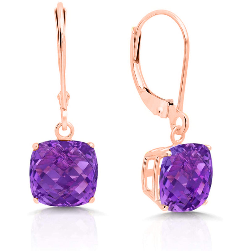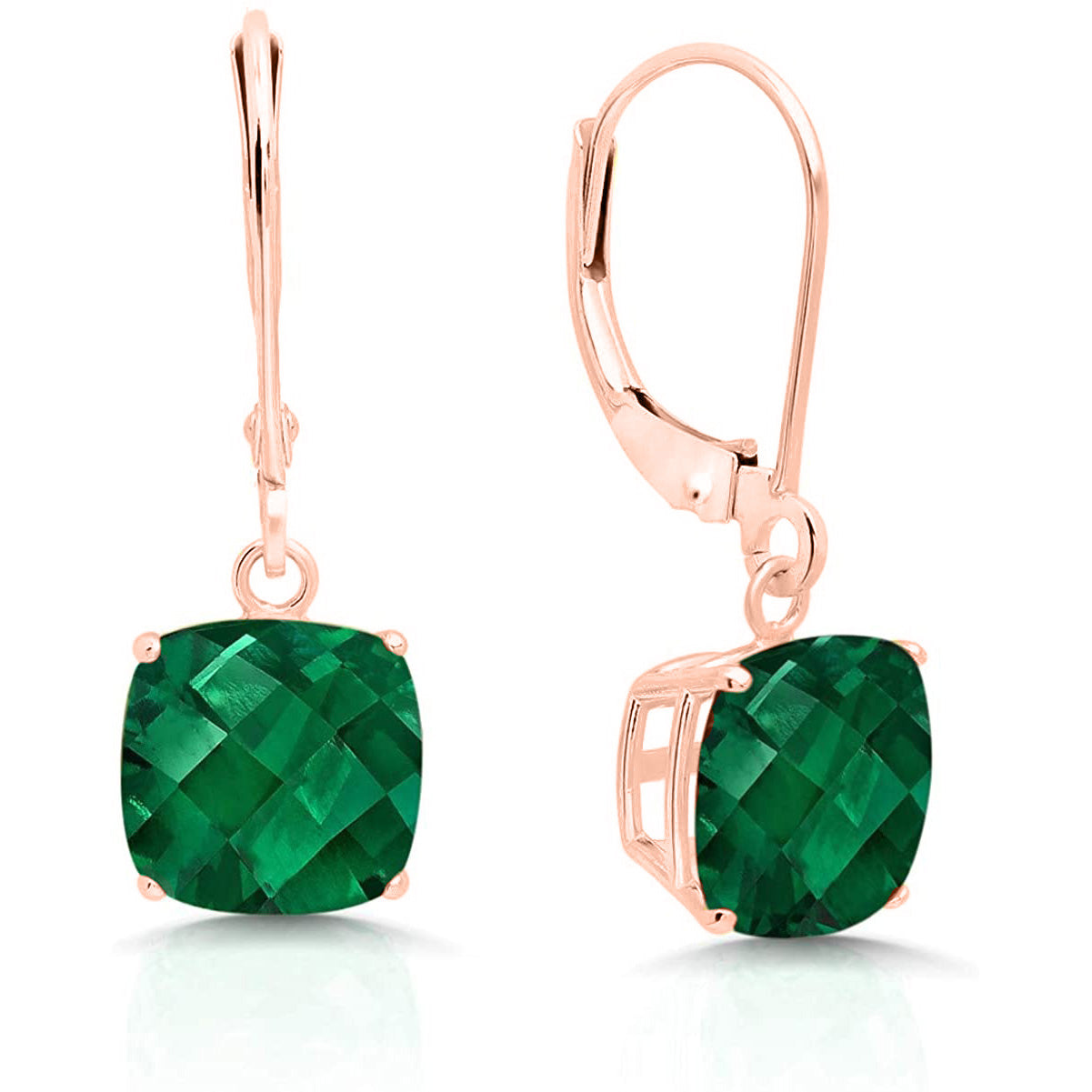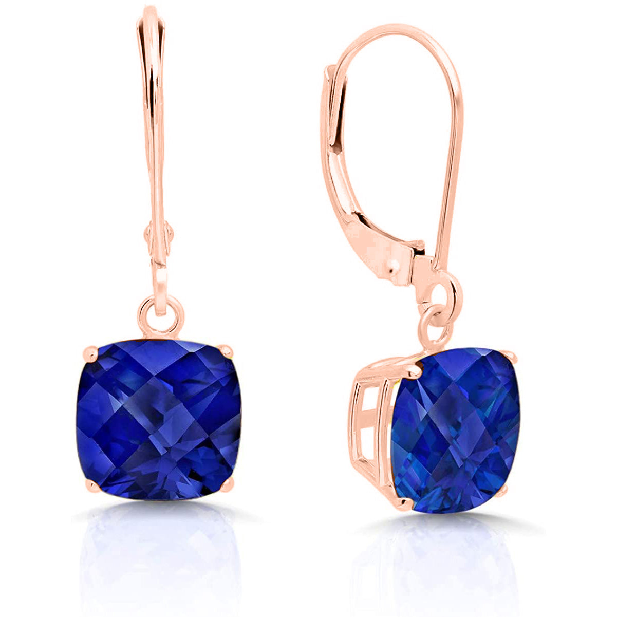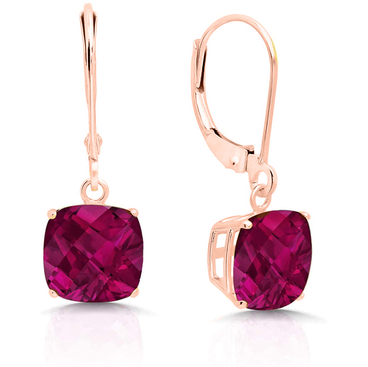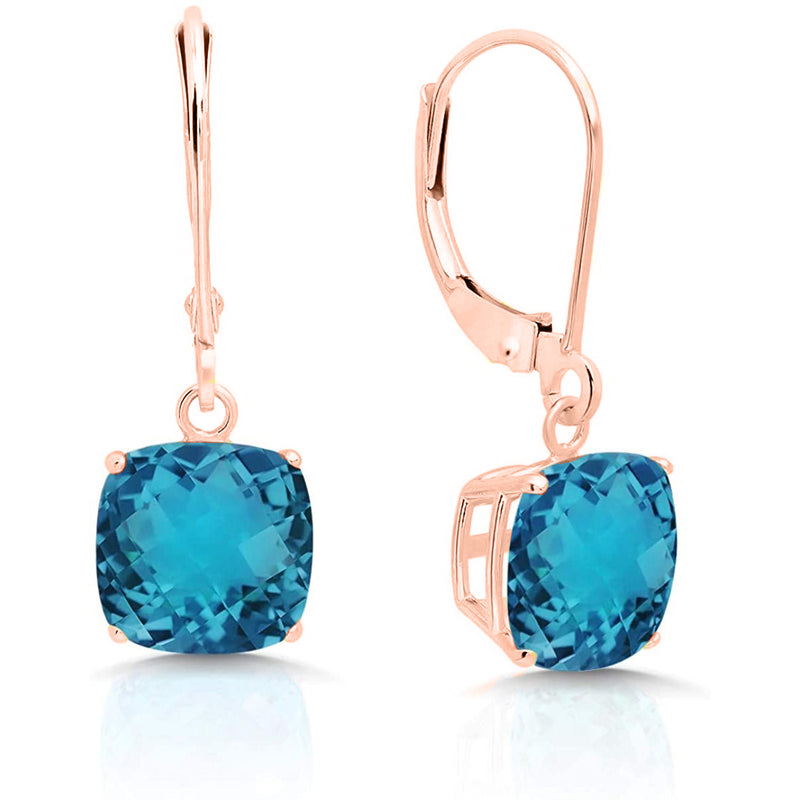 14K Rose Gold Princess Cut Simulated Gemstone Earrings - Multiple Options Available