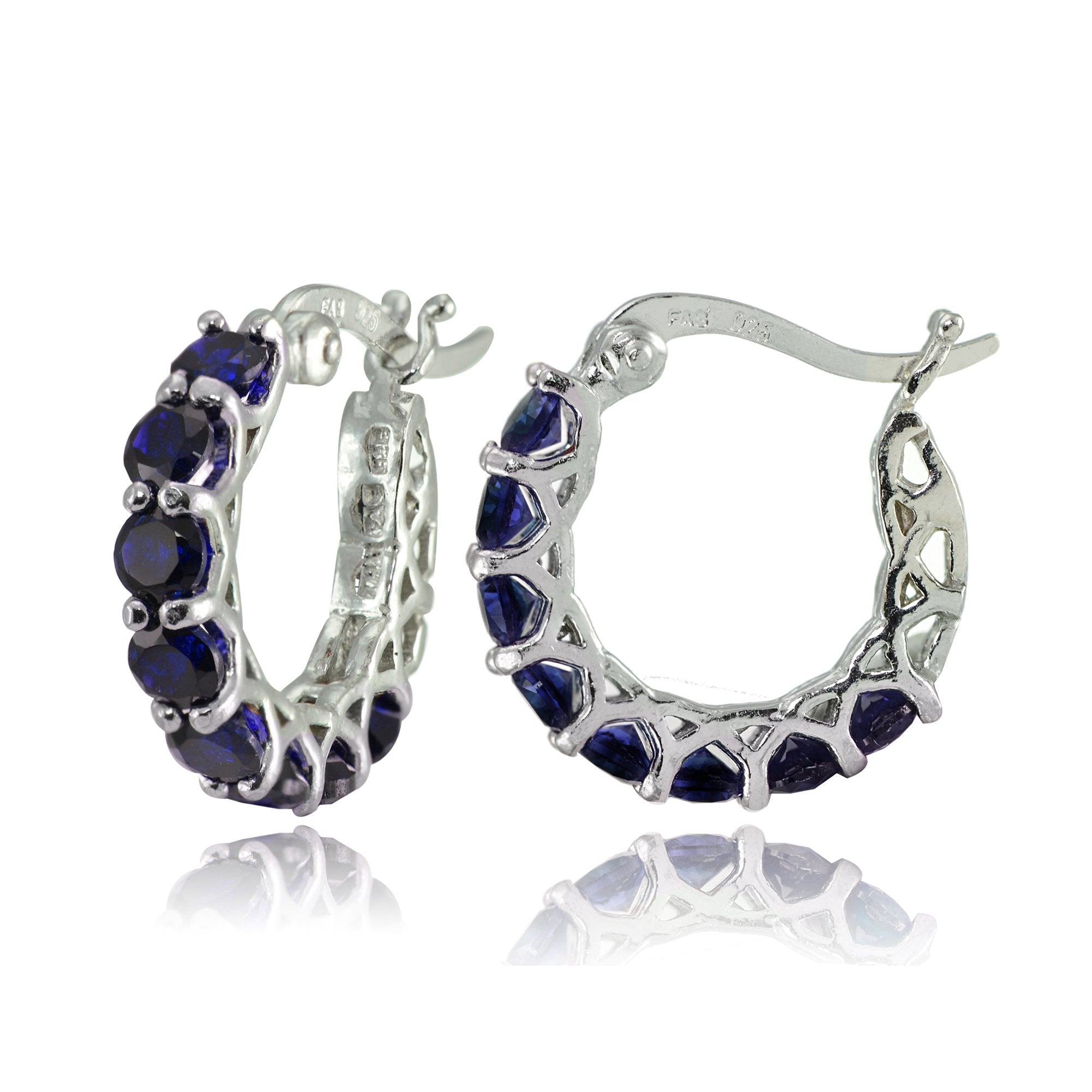 4.00 CT Sapphire Gemstone 1" French Lock Hoop Earringin 18K White Gold Plated