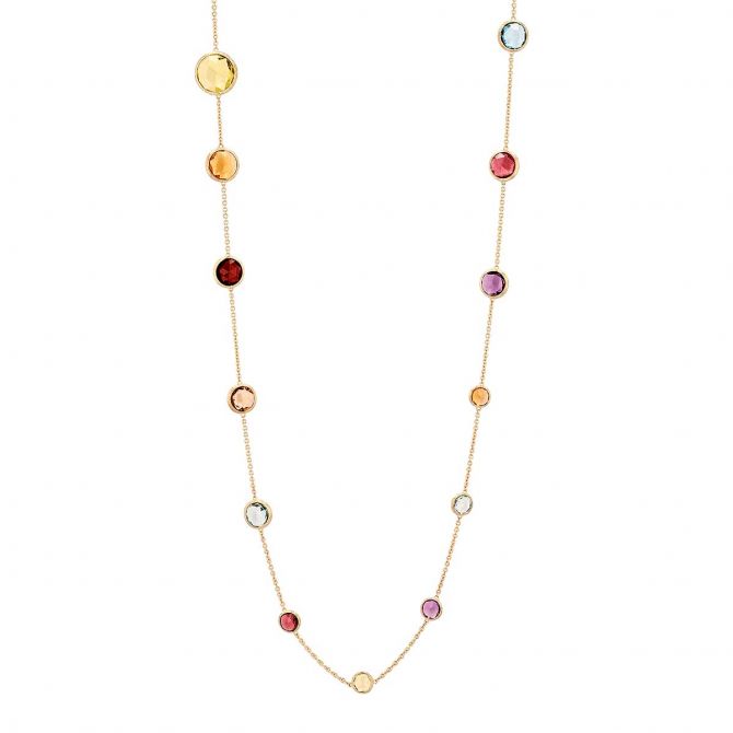 Jaipur Mixed Gemstone Station Necklace in Yellow Gold, 36"