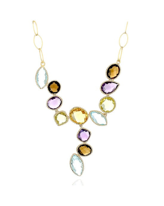 18K Gold Paradise Blue Topaz and Mixed Gemstone Long Necklace