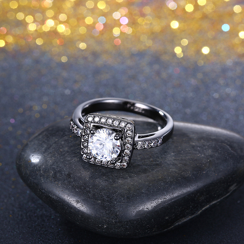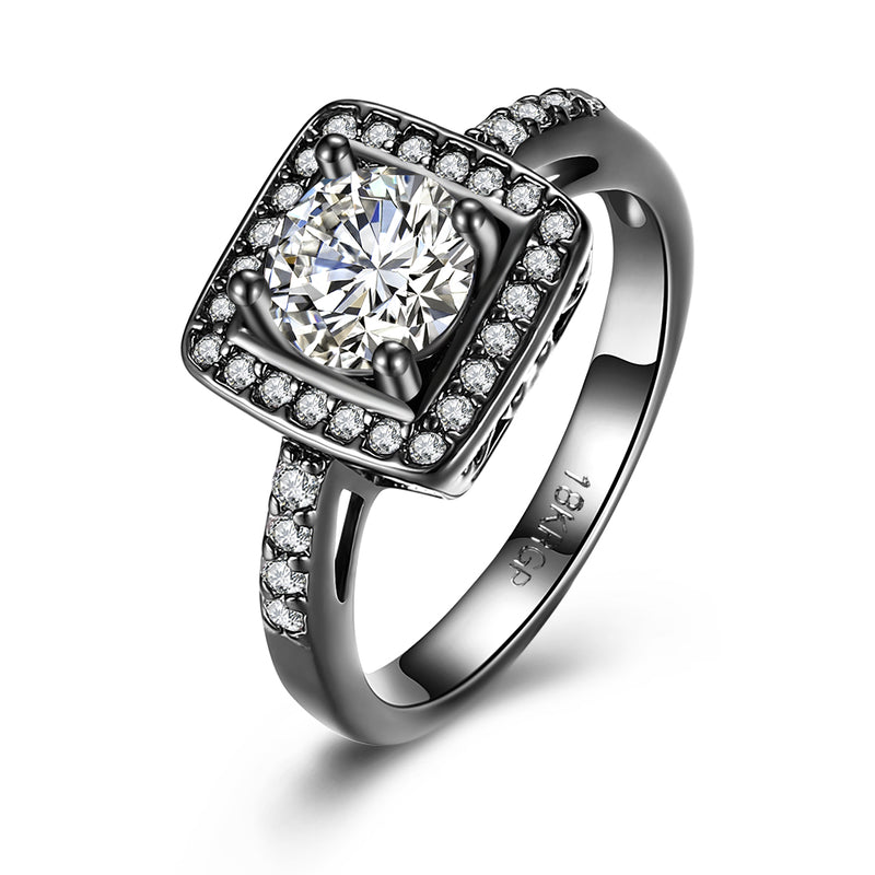 Swarovski Pave Halo Shaped Ring in Black Gun Plating