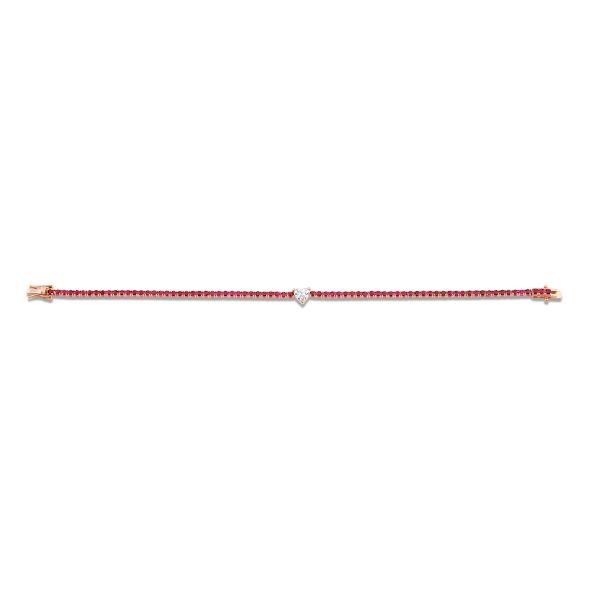Straight Line Ruby Bracelet with Heart Diamond Center