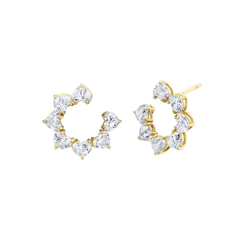 Heart Shape Diamonds Open Ended Earrings in 18k Yellow Gold