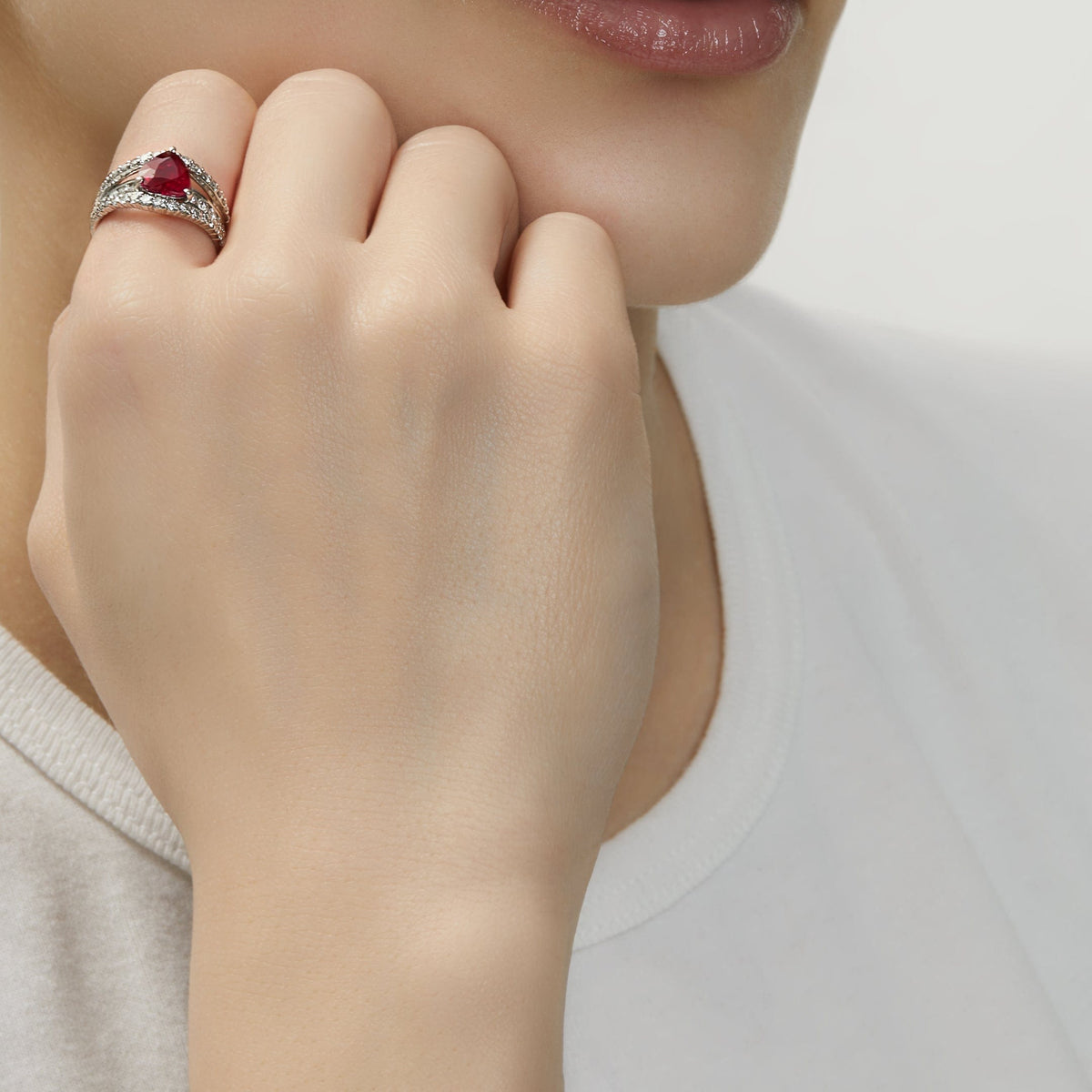 Burmese Ruby + Diamond Heart Shape Ring