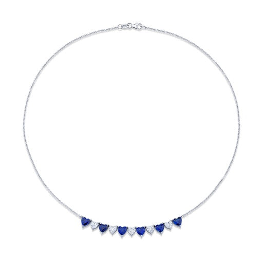Alternating Heart Shape Diamond & Sapphire Necklace