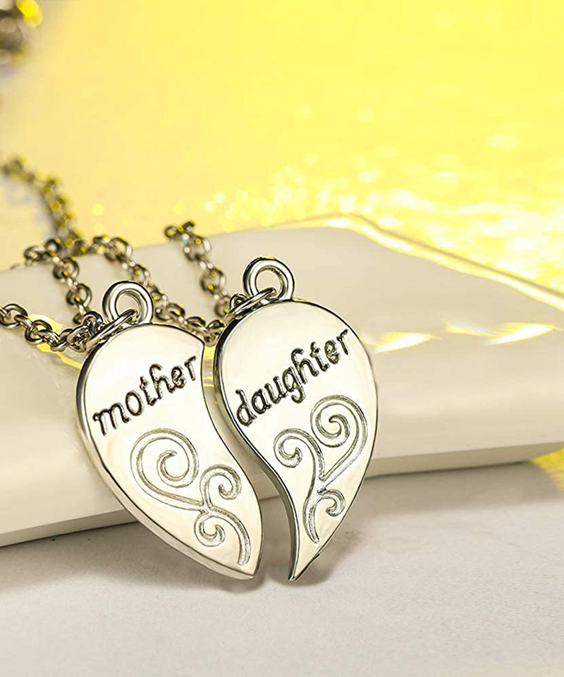 Mother & Daughter Heart Shaped Silver Plating Necklace