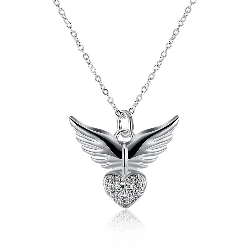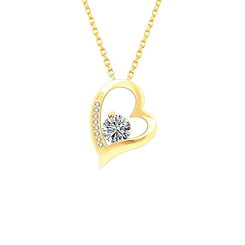 Gold Plating Heart Shaped White Crystal Pendant Necklace