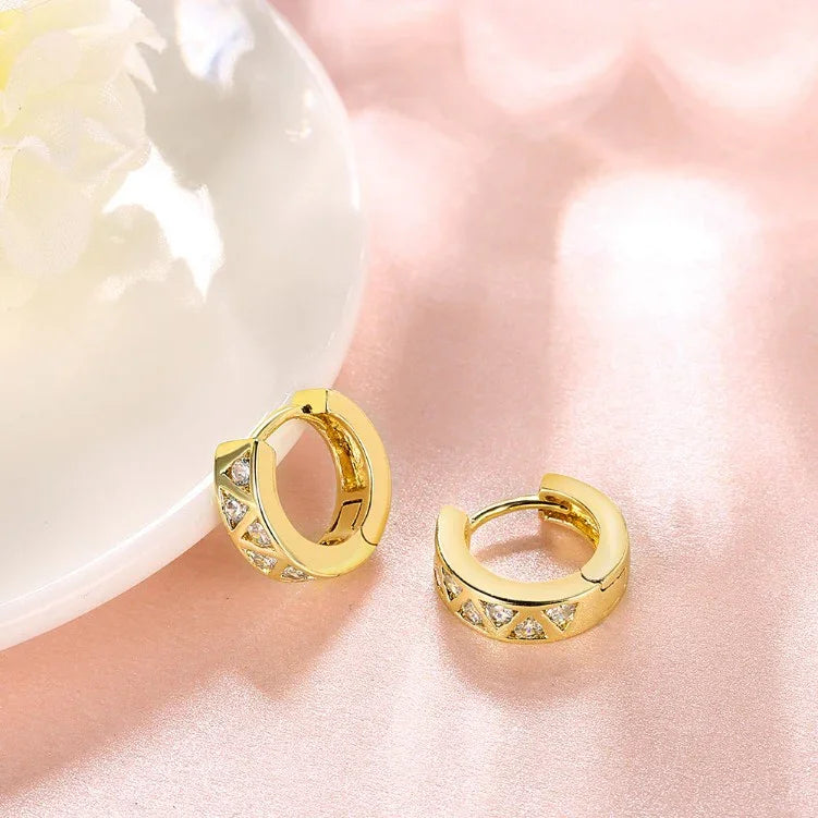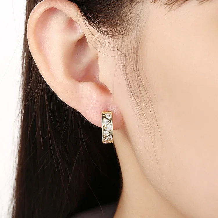 Golden NYC 18K Gold Plated Triangle Design Stones Earring