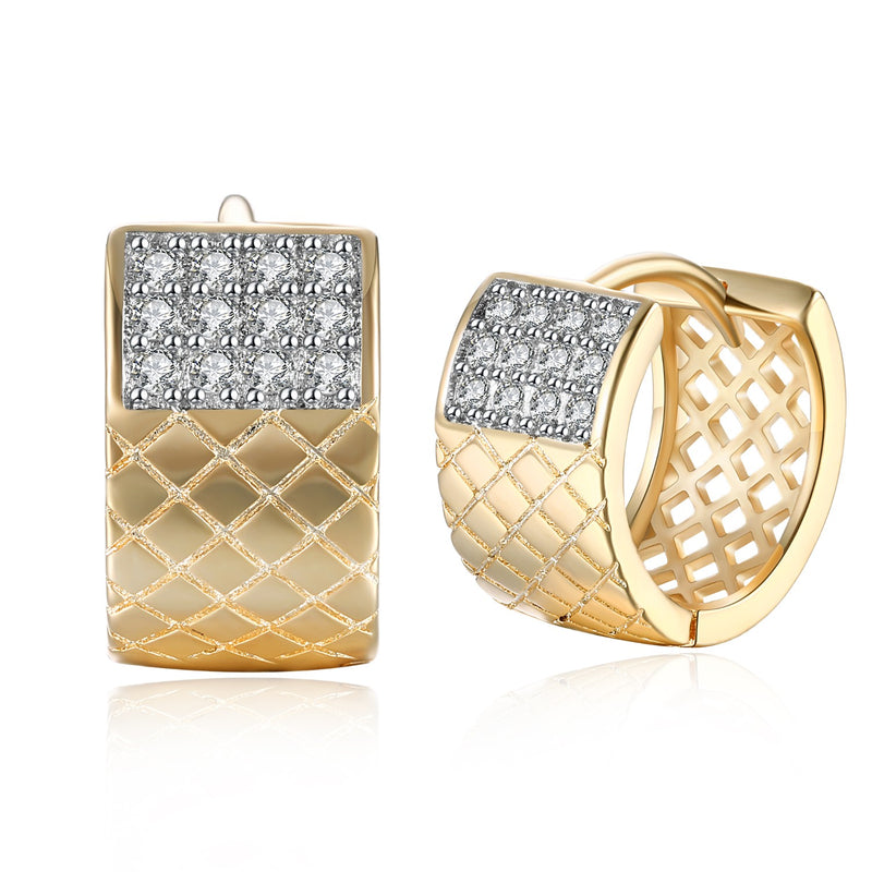 Twelve Stone Swarovski Crystal Criss-Cross Huggies Set in 18K Gold