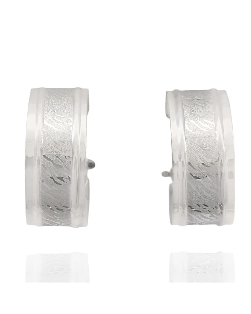 Satin Finish Huggie Earrings in White Gold