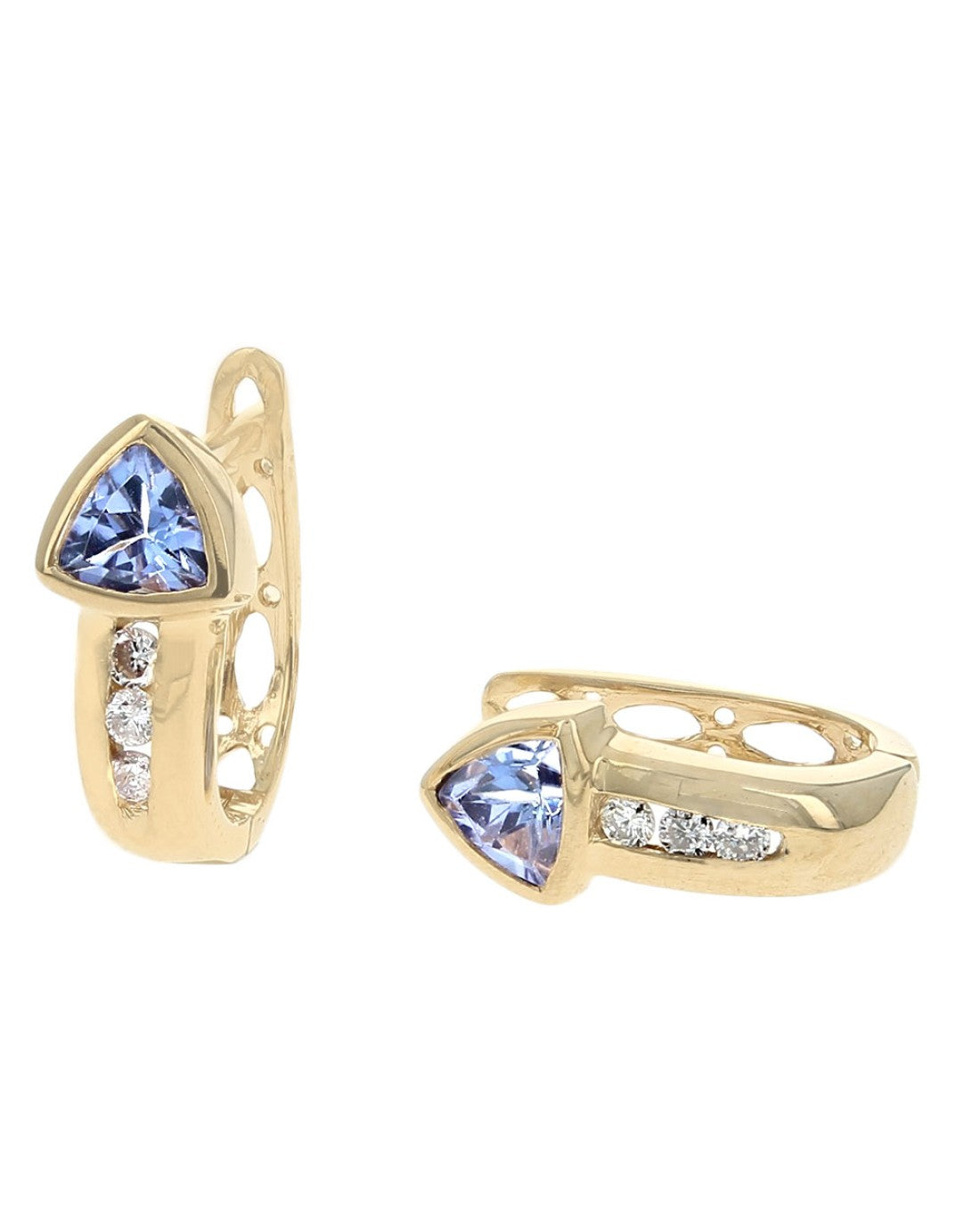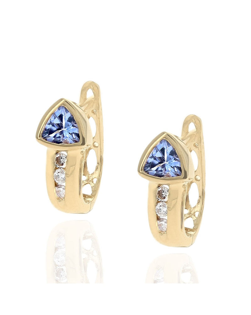 Tanzanite and Diamond Huggie Earrings in Yellow Gold