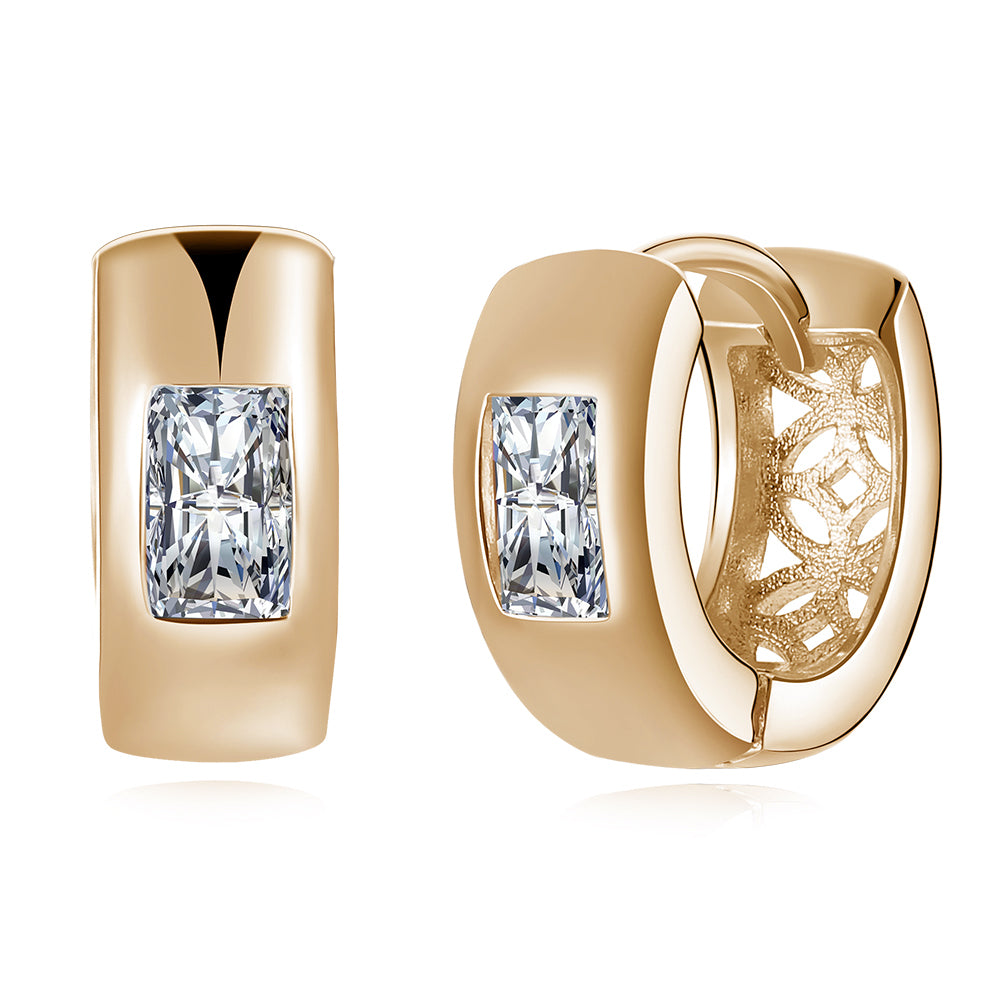 Simulated Square Diamond Clip On Huggies Set in 18K Gold - Golden NYC Jewelry