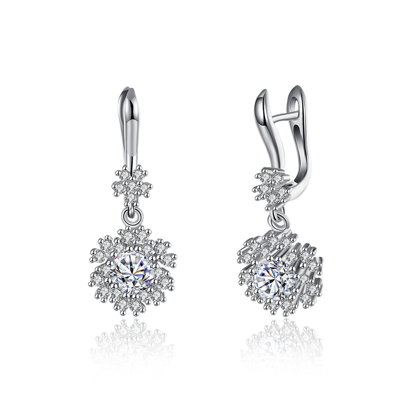 Swarovski Crystal Circular Leverback Earrings Set in 18K White Gold - Golden NYC Jewelry