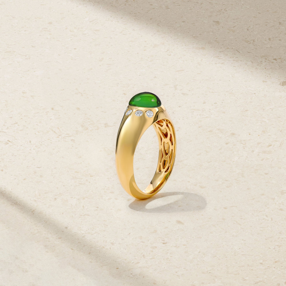 Green Tourmaline and Pave Diamond Ring in Yellow Gold