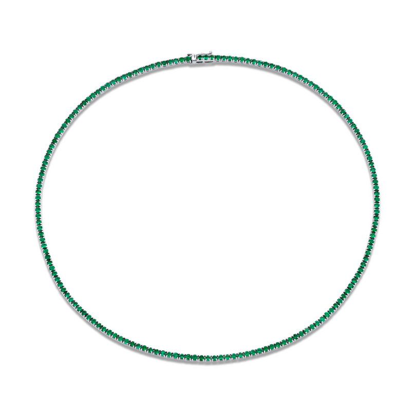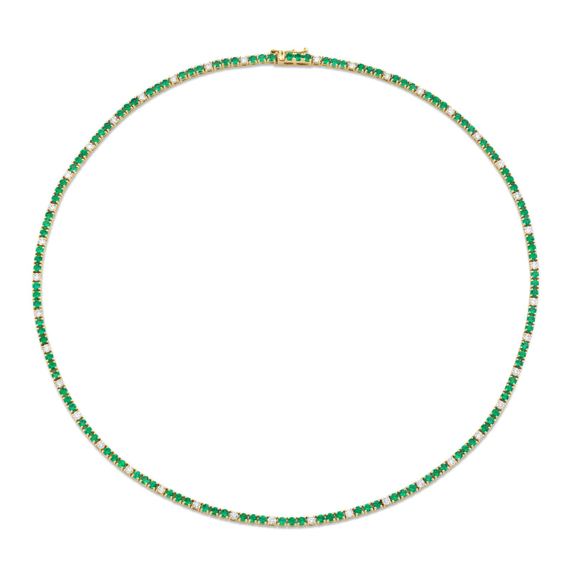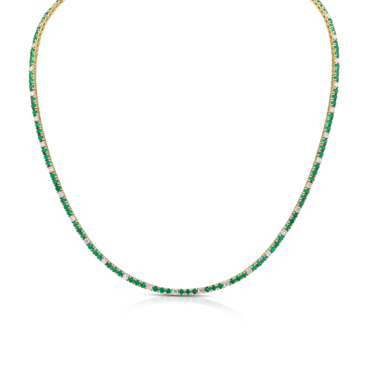 6.27 Carat 18k Yellow Gold Green Emerald Straight Line Necklace
