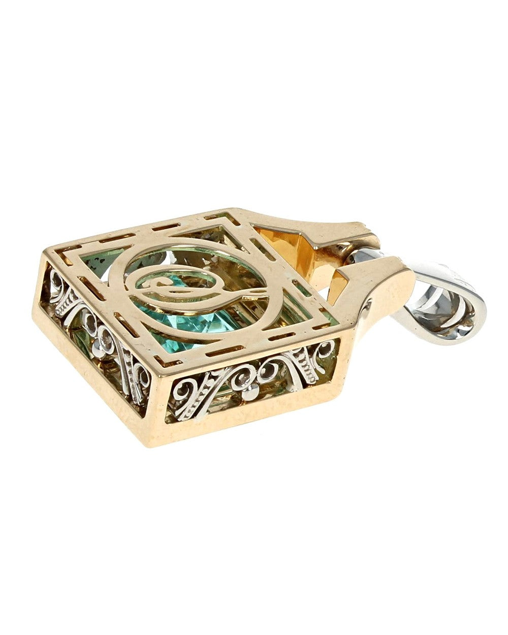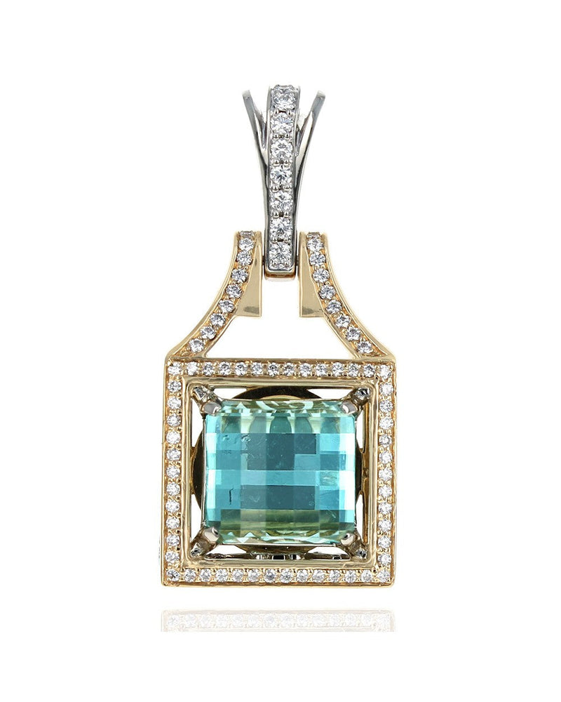 Aquamarine and Green Tourmaline Three-Stone Ring with Diamonds