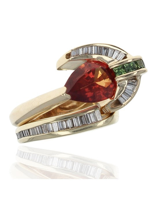 Orange and Green Sapphire and Diamond Fashion Ring Set